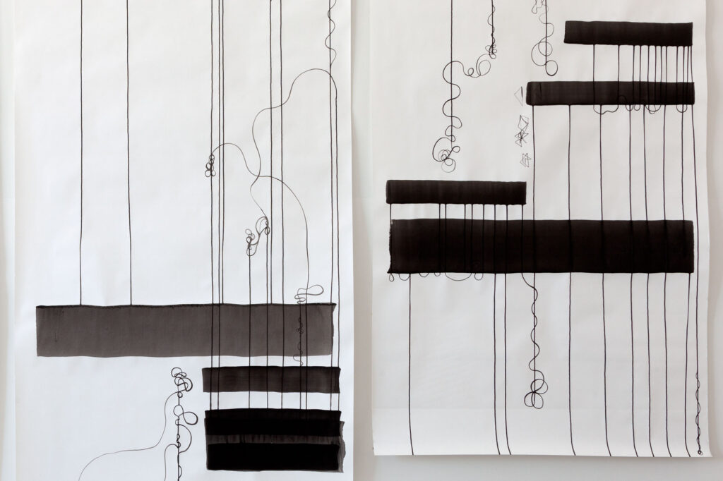 Fliessband (Assembly Line) is a modular, variable, expansive ink drawing on ten-meter-long strips of paper, each one meter wide. The work is created through the continuous repetition of drawing actions and the variation of the resulting patterns.